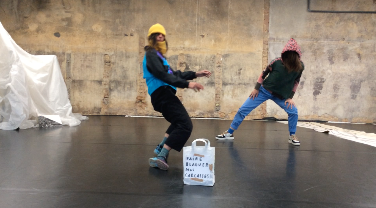 Ces pratiques nous les rassemblons, les nommons, et les partageons dans des contextes de performances, d’ateliers et de médiation artistique (scolaires et EHPAD) avec l’envie qu’elles se propagent et puissent devenir de réels outils de réflexion et d’émancipation. Il nous semble urgent de partager des pratiques artistiques qui non seulement fabriquent des spectacles mais qui aussi deviennent des appuis de résistance collective face à un monde épuisant et épuisé. La fiction fait partie du jeu. Tout comme la tendresse. Elles nous servent de béquilles pour trouver des appuis tenaces et des formes d’alliances au-delà de nos peaux.